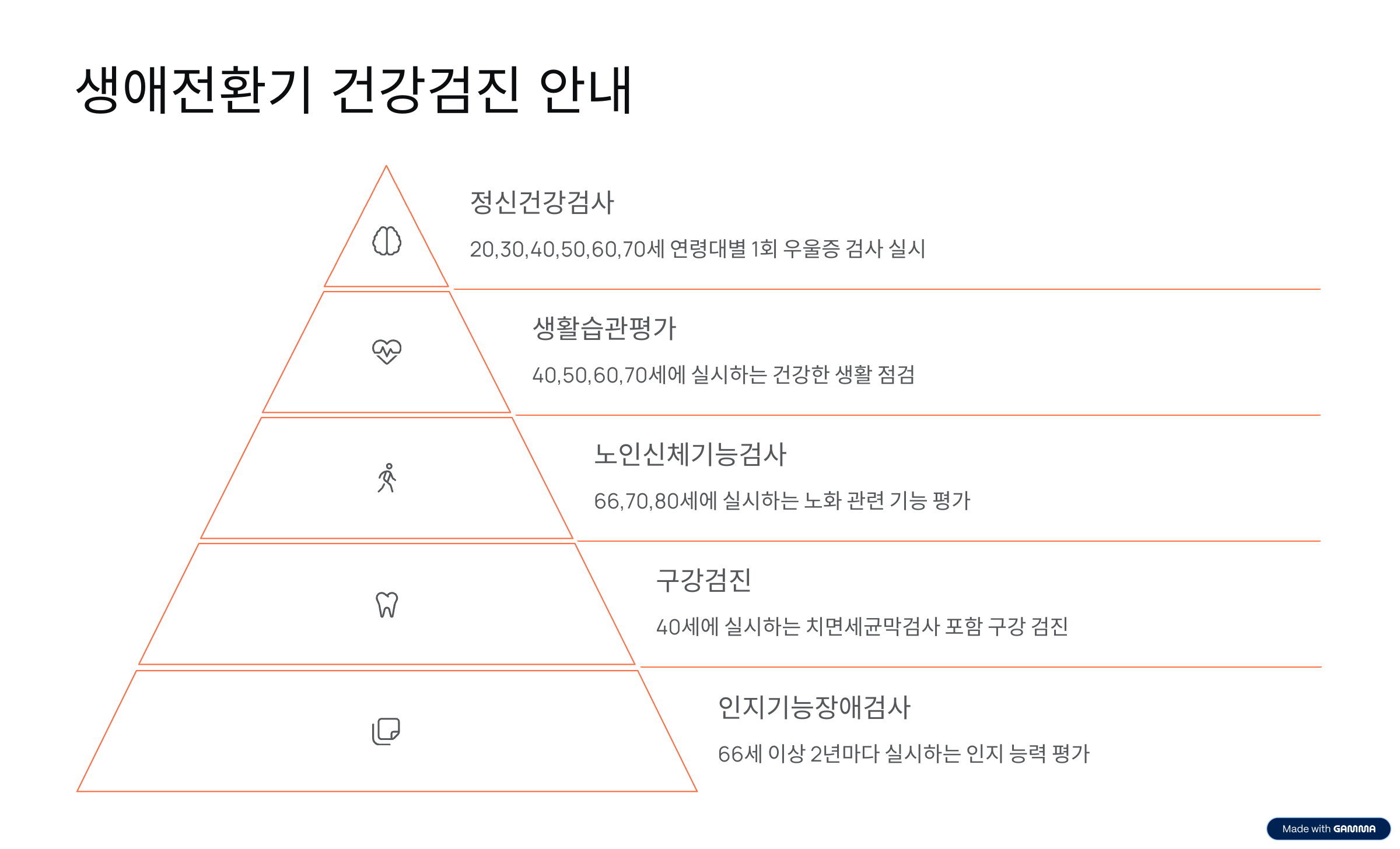 이 시기의 검진은 노년기 건강관리에 중요한 첫걸음이에요. 특히 인지기능장애나 낙상 위험은 조기에 발견해 예방하는 것이 무엇보다 중요하답니다.