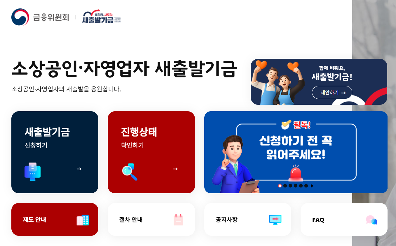 ※ 새출발기금 홈페이지에서 기금 외에도 다양한 프로그램을 진행 중에 있으니 참고해 주세요!!