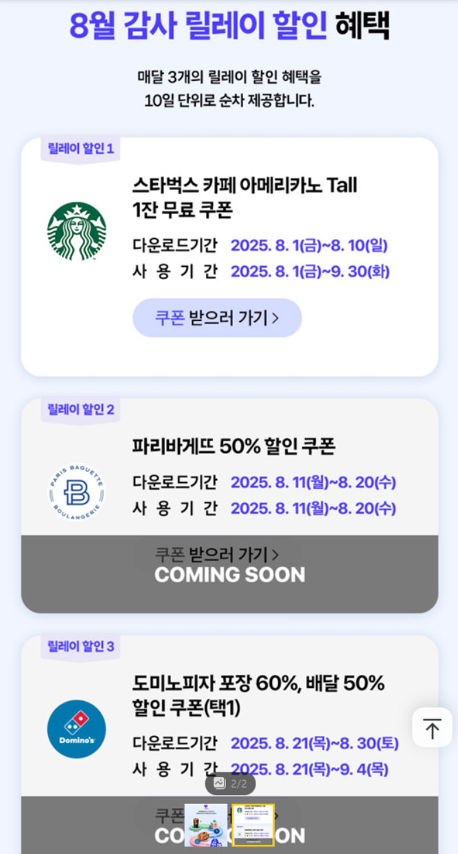- 8/11~20 파리바게뜨: 전 제품 50% 할인 (최대 1만원)