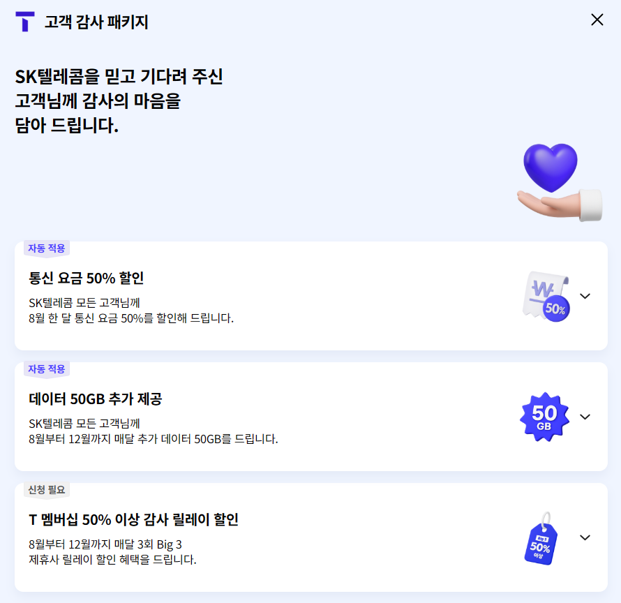 여기에 더해서 8월 한 달간은 통신요금의 50% 할인까지 적용돼서